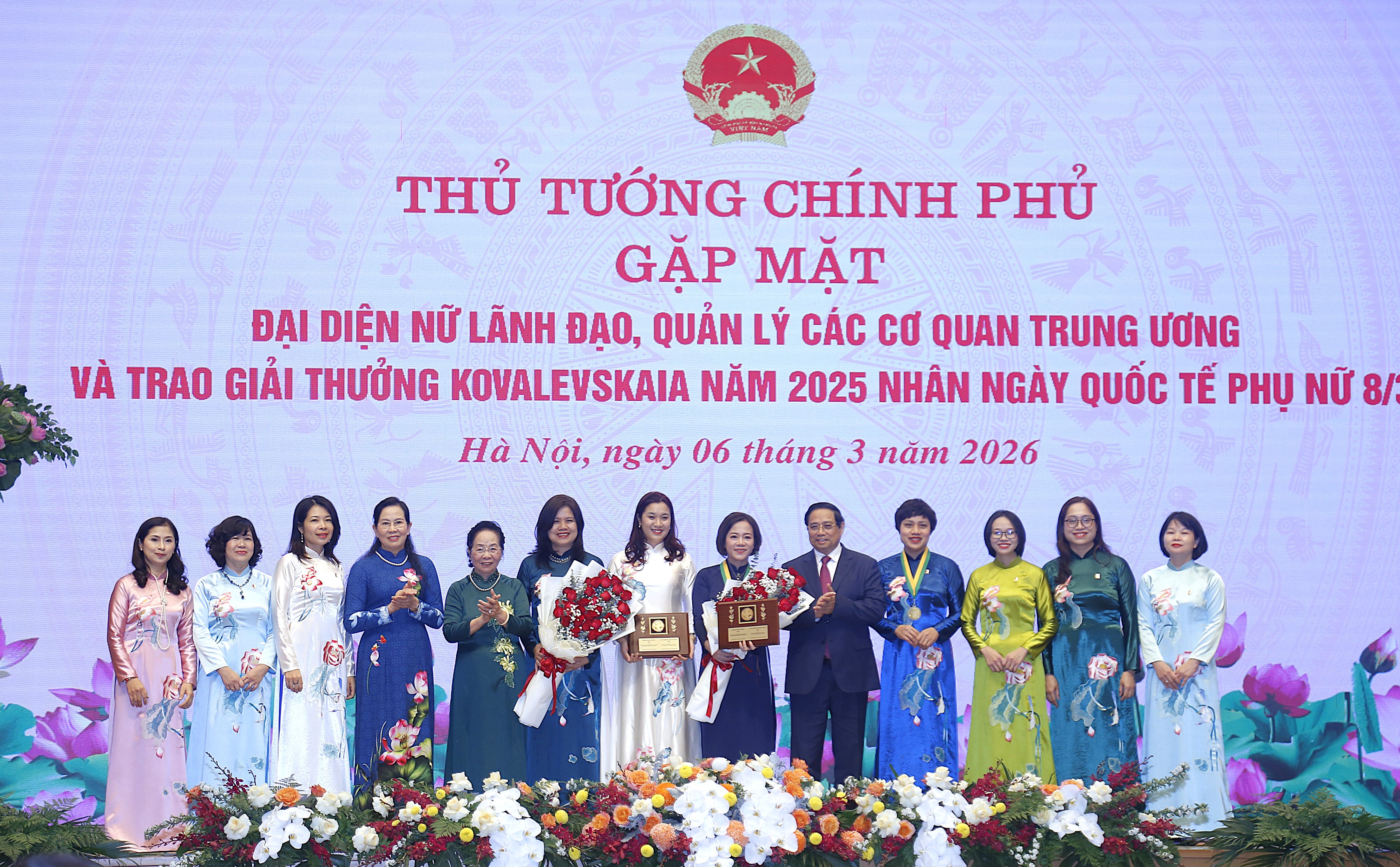 Nằm trong khuôn khổ Cuộc Gặp mặt của Thủ tướng Chính phủ với đại diện nữ lãnh đạo, quản lý các cơ quan Trung ương, sáng 6/3, Lễ trao Giải thưởng Kovalevskaia năm 2025 và trao Học bổng Kovalevskaia năm 2026 cũng đã được diễn ra trang trọng nhằm vinh danh các nhà khoa học nữ xuất sắc và động viên, khuyến khích các em nữ sinh sớm nuôi dưỡng đam mê khoa học.