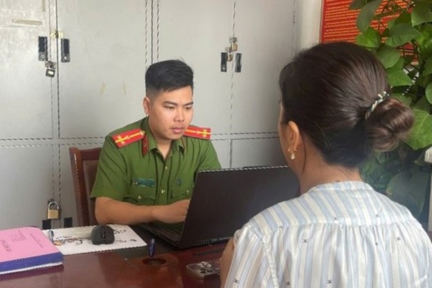 Chị P. đến trình báo sự việc với Phòng Cảnh sát hình sự, Công an tỉnh Quảng Ninh - Ảnh: Công an cung cấp