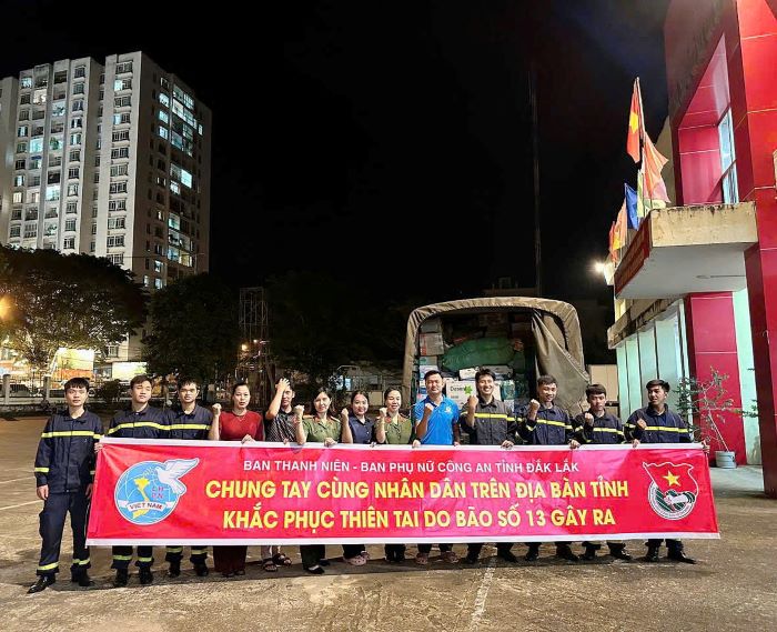 Phụ nữ Công an Đắk Lắk hướng về miền Trung sau bão số 13