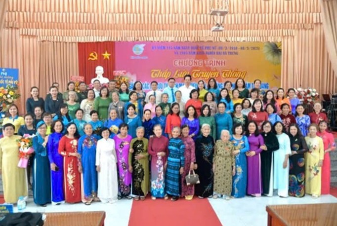 Các nữ cựu tù cách mạng tiêu biểu và nữ đảng viên nhiều năm tuổi Đảng tỉnh Tiền Giang gặp gỡ tại Chương trình Thắp lửa truyền thống do Hội LHPN tỉnh tổ chức. Trong suốt chiều dài lịch sử, phụ nữ Việt Nam đã đóng góp to lớn vào sự nghiệp đấu tranh giải phóng dân tộc. Các nữ anh hùng Bà Trưng, Bà Triệu, Nguyễn Thị Minh Khai, Võ Thị Sáu... là biểu tượng của lòng yêu nước, ý chí quật cường. Trong các cuộc kháng chiến, phụ nữ không chỉ trực tiếp cầm vũ khí chiến đấu mà còn đảm nhận nhiệm vụ sản xuất, tiếp tế lương thực, chăm sóc thương bệnh binh, nuôi dạy con cái, giữ gìn văn hóa dân tộc.