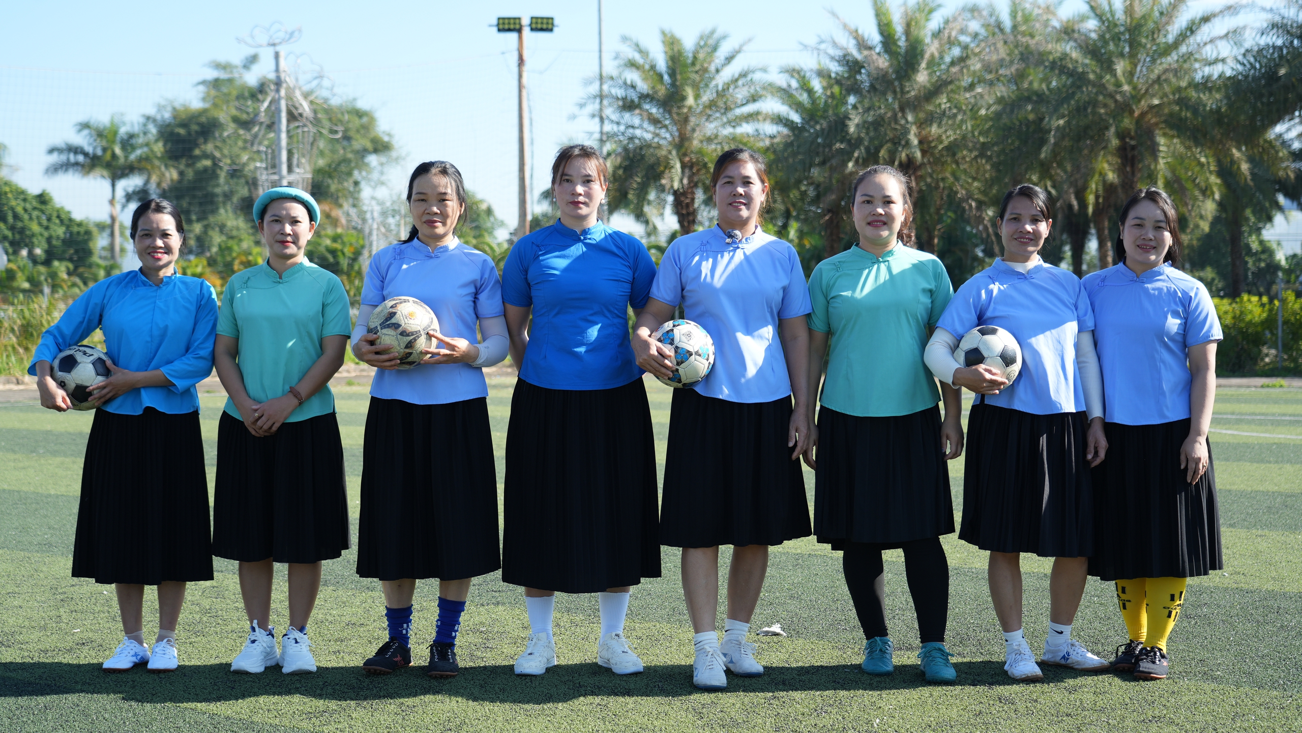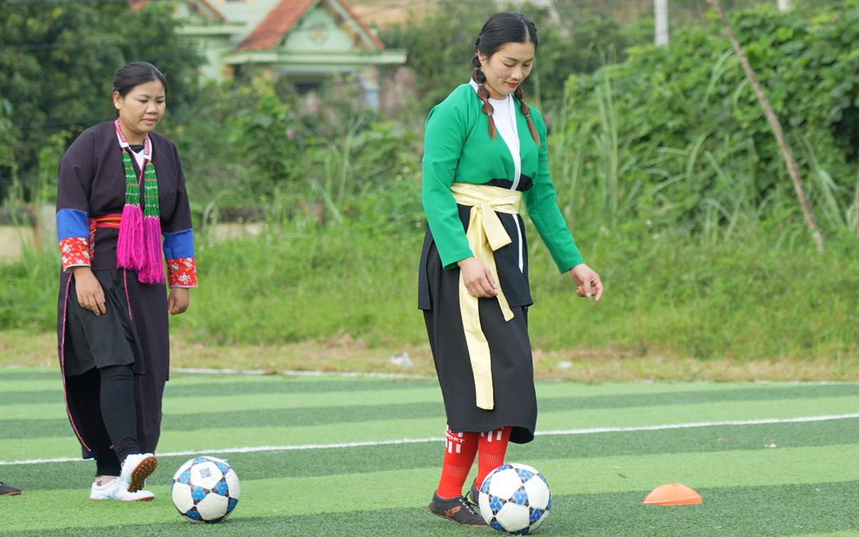 Phụ nữ vùng cao mặc trang phục truyền thống ra sân cỏ thi đấu