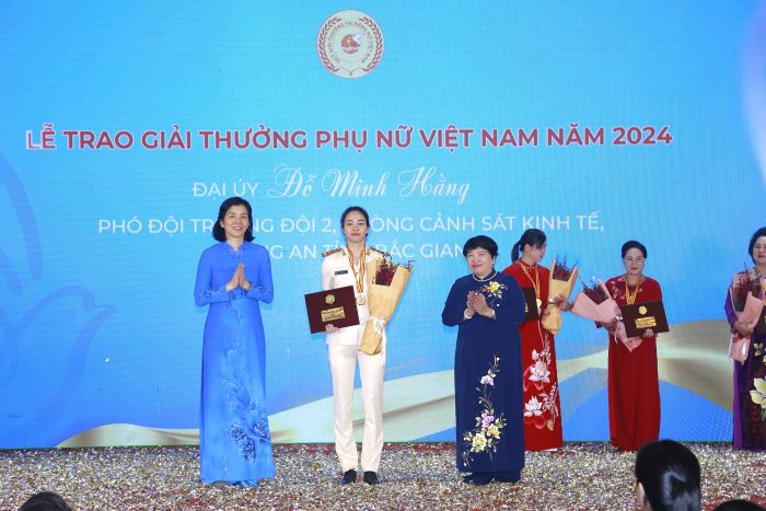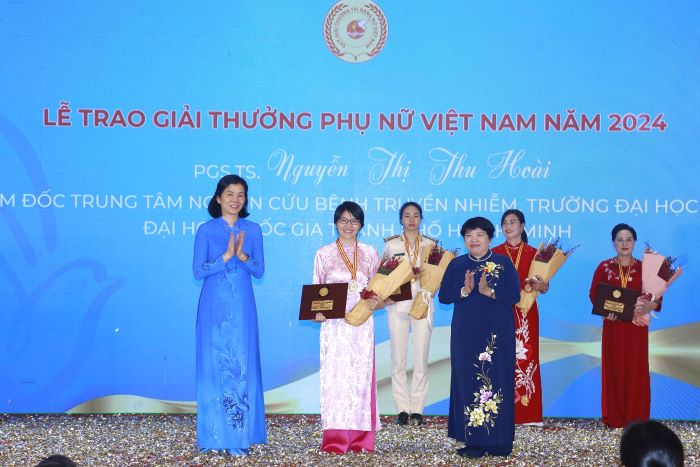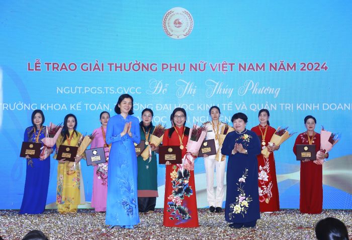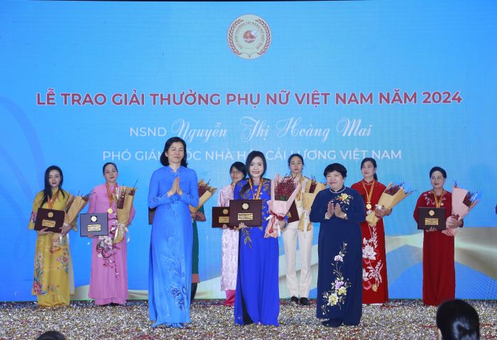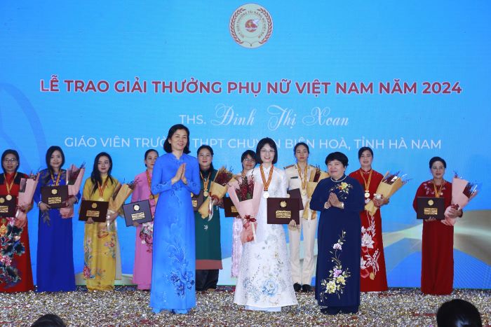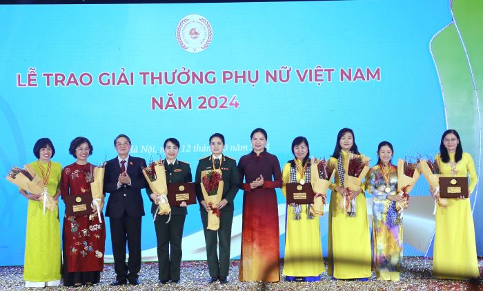 Lễ trao Giải thưởng Phụ nữ Việt Nam năm 2024 diễn ra vào sáng 12/10, tại Hà Nội nhằm kỷ niệm 94 năm thành lập Hội LHPN Việt Nam và Ngày Phụ nữ Việt Nam 20/10. Giải thưởng Phụ nữ Việt Nam năm 2024 được trao cho 04 tập thể và 11 cá nhân xuất sắc trên các lĩnh vực: giáo dục, y tế, văn hoá, lực lượng vũ trang, Đảng - đoàn thể, tổ chức xã hội nghề nghiệp, doanh nghiệp, công nhân…