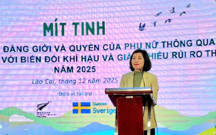 Trong bối cảnh biến đổi khí hậu ngày càng diễn biến phức tạp, Lễ mít tinh "Thúc đẩy bình đẳng giới và quyền của phụ nữ thông qua hành động ứng phó với biến đổi khí hậu và giảm thiểu rủi ro thiên tai năm 2025" diễn ra ngày 5/12 tại tỉnh Lào Cai gửi đi thông điệp mạnh mẽ: Phụ nữ không chỉ là đối tượng chịu ảnh hưởng mà còn là lực lượng tiên phong trong bảo vệ môi trường và xây dựng cộng đồng bền vững. -