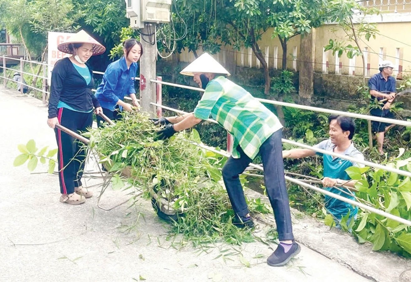 Trên khắp các nẻo đường, từ đường chính đến đường kiệt, chị em hội viên phụ nữ phường Thanh Thủy tay xẻng, tay chổi, thu dọn từng mảng bùn non, gom từng đống rác, nhành cây... chung tay sớm lấy lại vẻ sạch sẽ cho khu dân cư. -